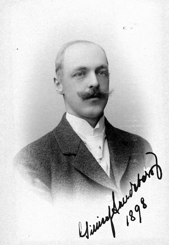 Porträtt på P.A. Åkerlund med släkt och vänner till familjen.