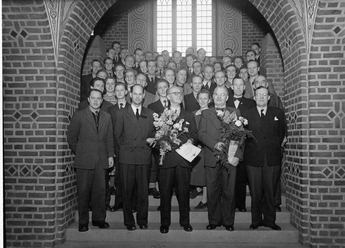 Stadsingenjör Bärnhard Sandström och bitr. stadsingenjör F. Hj. Thorén hyllas den 31/1 1950.
