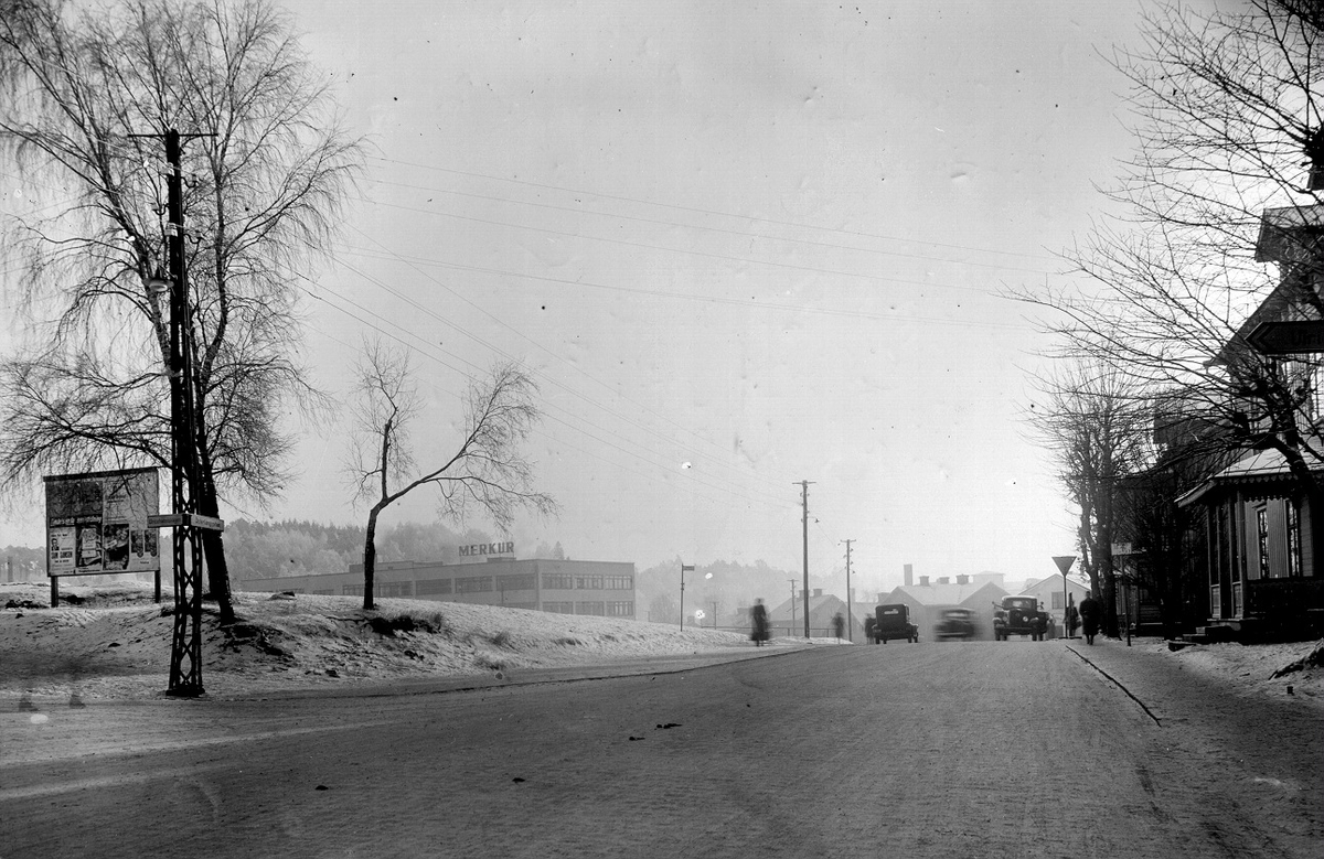 Korsningen Österlånggatan x Ulricehamnsvägen med textilfabriken Merkur i fonden t.v.