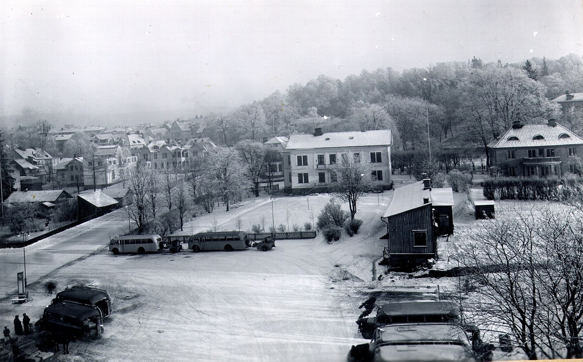 Gamla fjärrbussuppställningsområdet vid Fabriksgatan med Annelundsparken i fonden.