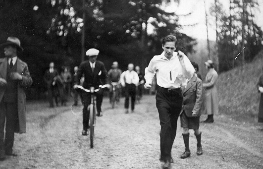Gångtävling. Allan Carlsson går i mål som 6:a i klass 1. Tid 39.54.