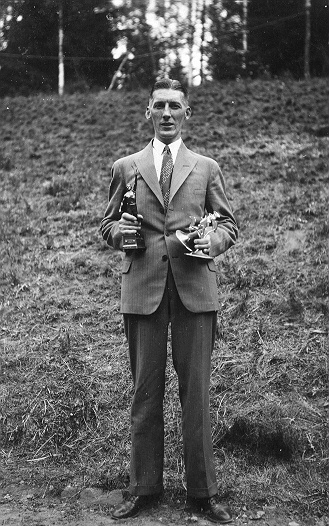 Gångtävling. Segraren Axel Mårtensson tid 34.29