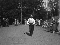 Gångtävling. Carl Johansson går i mål, tid 40.18