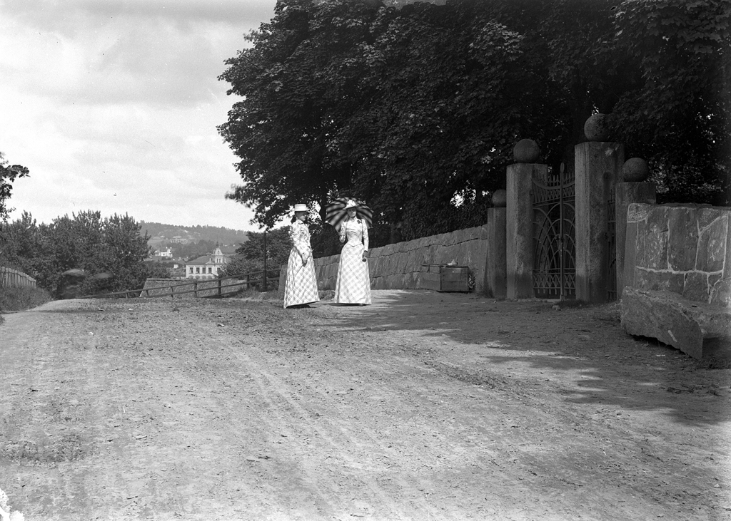Ingång till gamla kyrkogården (Sankt Ansgar) med 2 eleganta damer.
