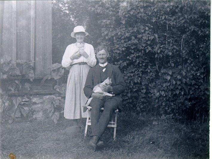 Segerstads sn. Pickagården. John Eriksson i Pickagården med systerdottern Elin Svenningsson. John med Lippera och Elin med Snövit.