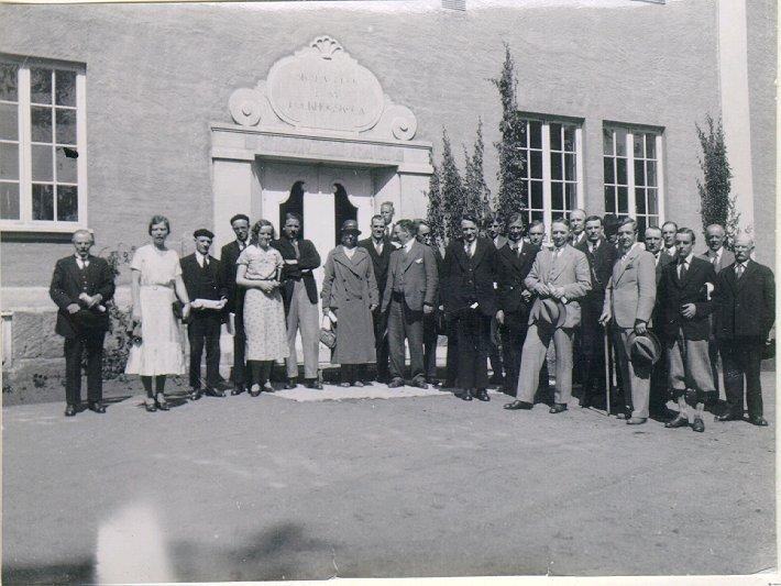 Samfundet för hembygdsvård. Utflykt 1931 framför Skaraborgs läns folkhögskola, Axvall.