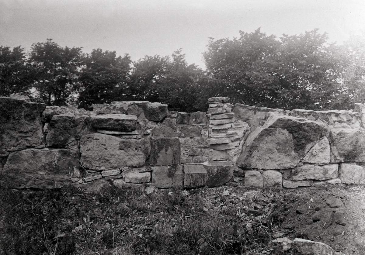 Norra korsgångens sydmur. Utsidan, partiet kring östra fönstret från söder.