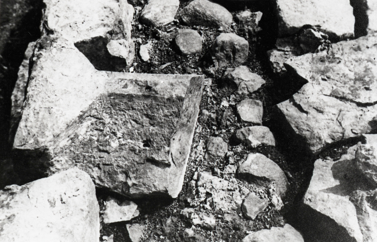 Halv solbänk. Sekundärt använd i ö. korsgångsmurens ö. vägg.