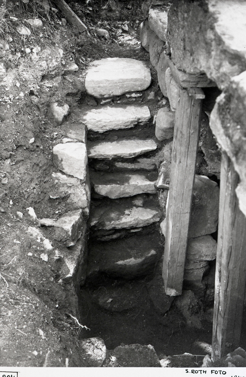 Östra huset. Källartrappan vid sydvästra hörnet från öster.