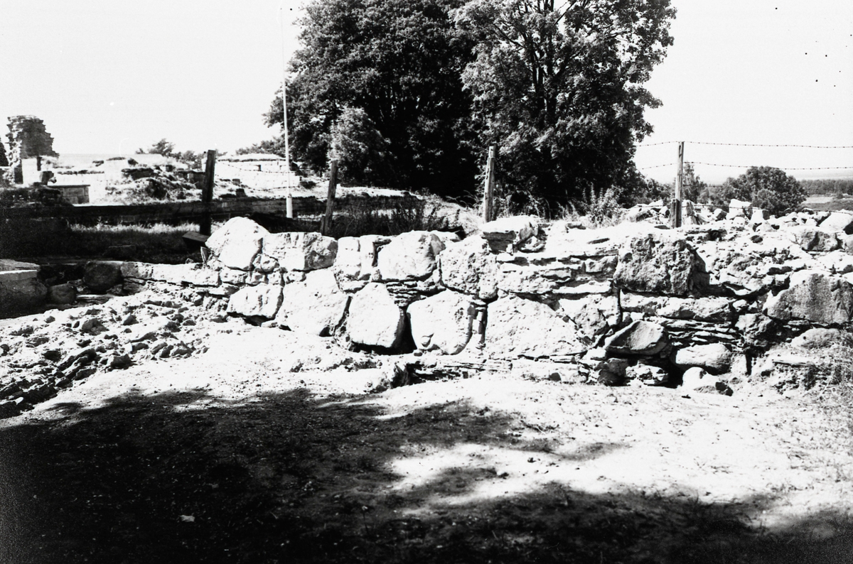 Östra huset. Norra väggens västra del från söder. (inifrån)