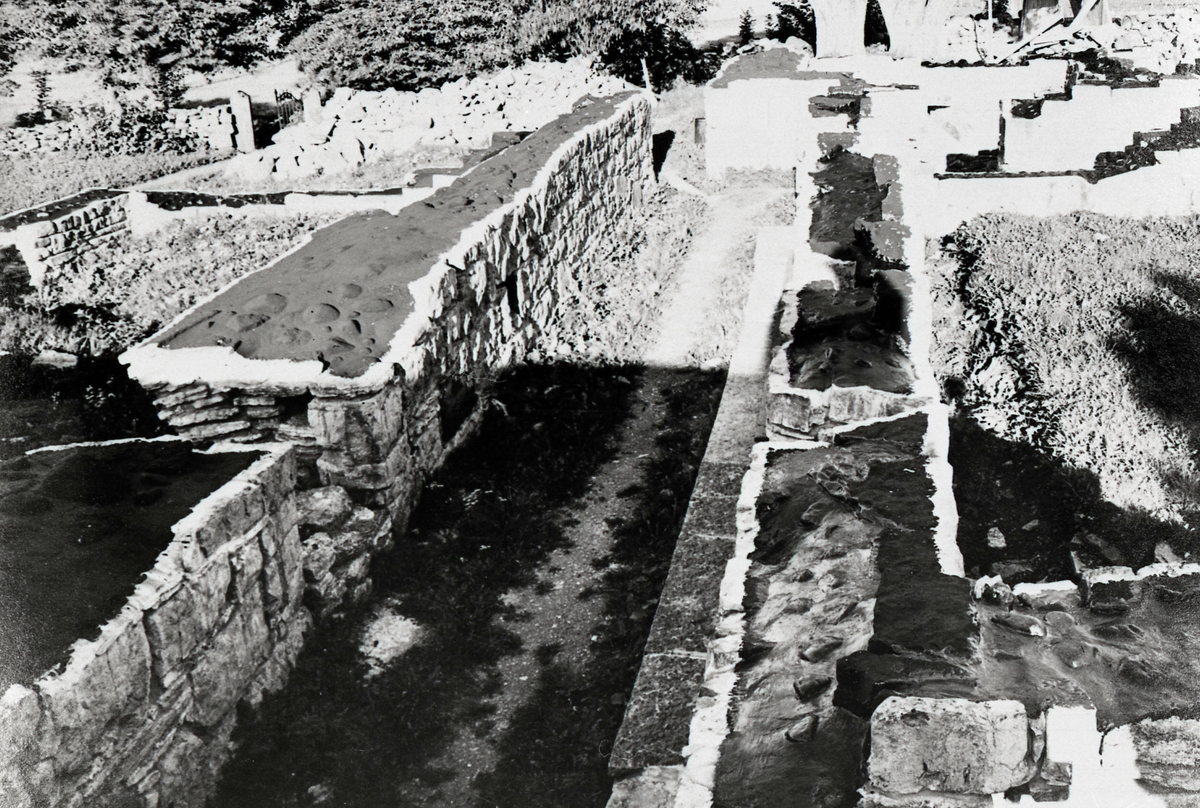 Norra korsgången från väster. Murarna preparerade för torvning.