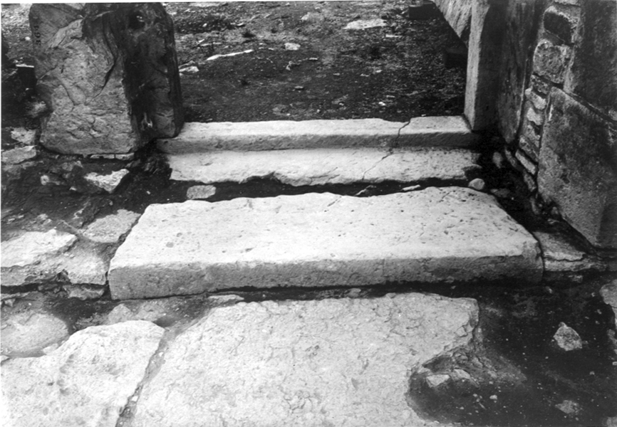 Arkitekturdetaljer. Porten mellan kyrka och kloster. Tröskelsten.