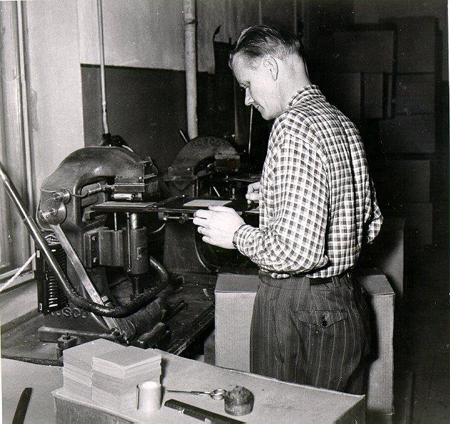 J.A. Forss Hattfabrik. Tryckning av etiketter och svettremmar med firmanamn.