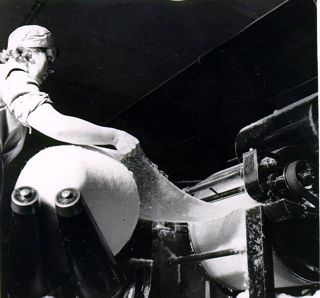 J.A. Forss Hattfabrik. Ullen spinns upp på en dubbelkon och klipps sedan isär till två hattämnen.