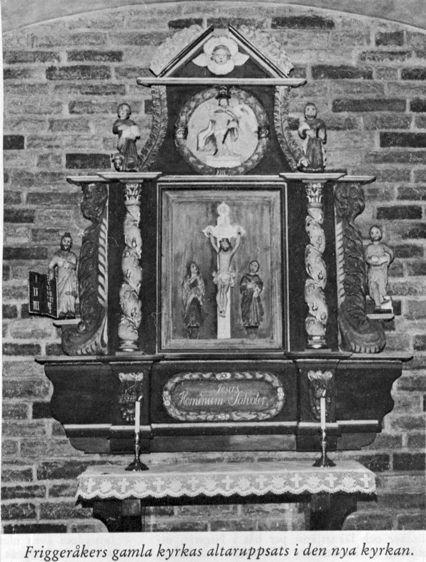 Friggeråkers gamla kyrkas altaruppsats i den nya kyrkan.