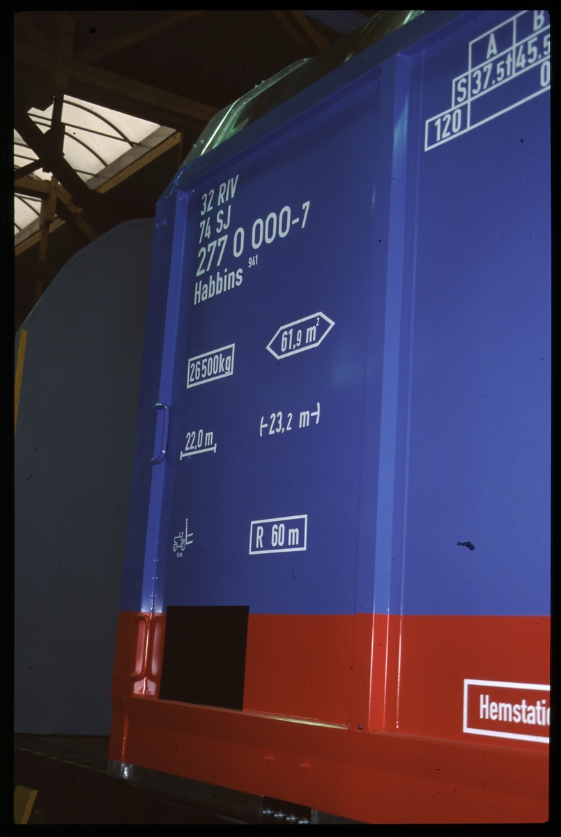 Märkning av SJ Habbins. 32 74 277 0 000-7.