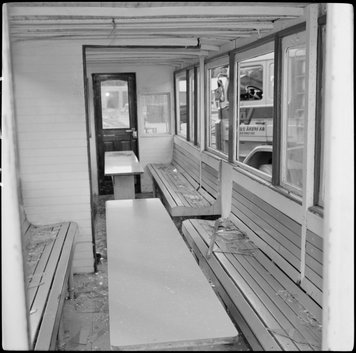 Personvagnar ankommer till Östra Södermanlands museijärnväg. Interiörbild.