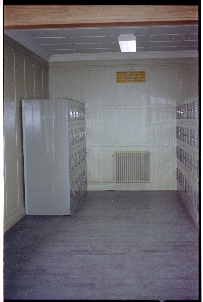 Förvaringsskåp i väntsalen på Östersund station.