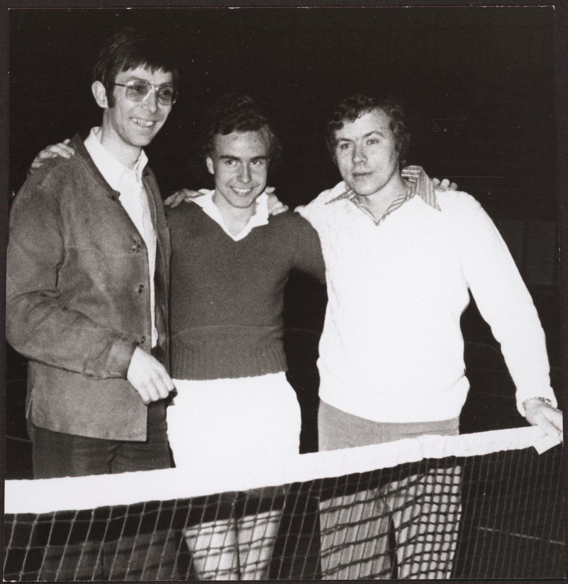 Från vänster: Roland Thörnqvist, Inge Svensson och Bert Johansson. Gruppsegrare i en tennisturnering.