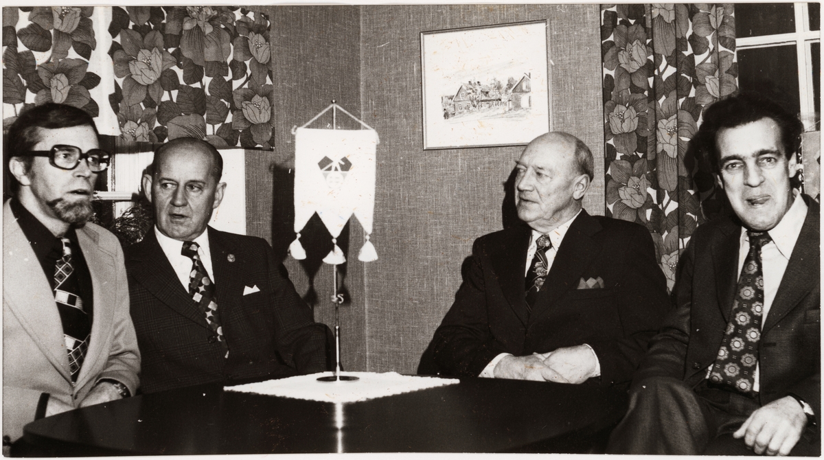 Järnvägens Idrotssförening Kopparberg firar 25 år. Från vänster: Martin Karlsson, Oxelösund, K. G. Bergström, Karl-Axel Lindstedt och Karl-Erik Pettersson samtliga från Kopparberg.