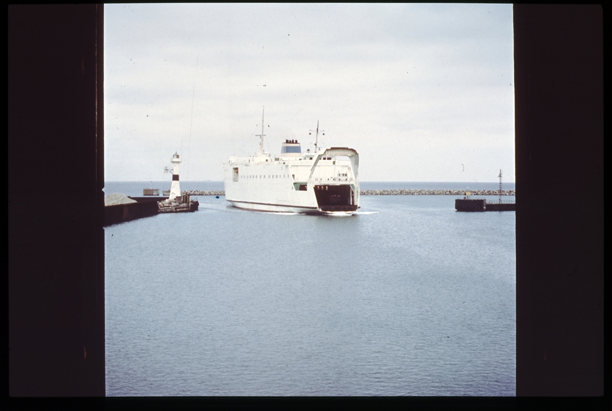 Tågfärja M/S Götaland eller systerfartyget M/S Svealand på ingång till Trelleborg.
