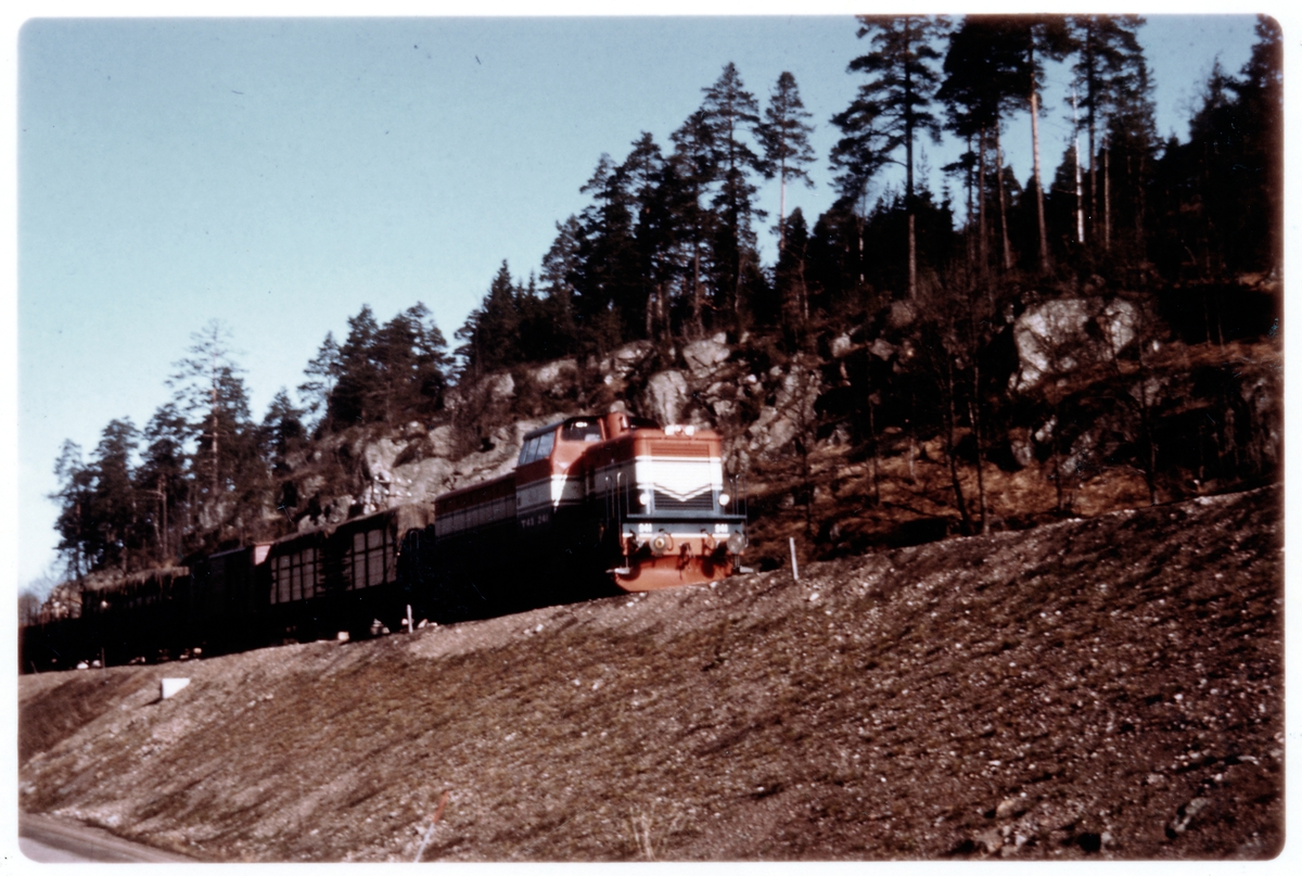Godståg från Linköping till Västervik passerar Överums bruk.