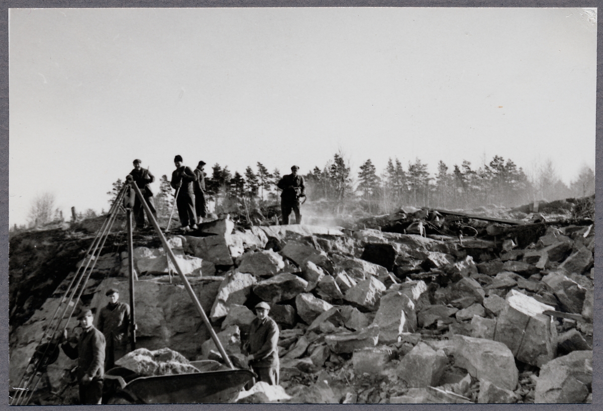 Början av arbetet med vägomläggning och breddning till normalspår på linjen mellan Överum osh Storsjö.