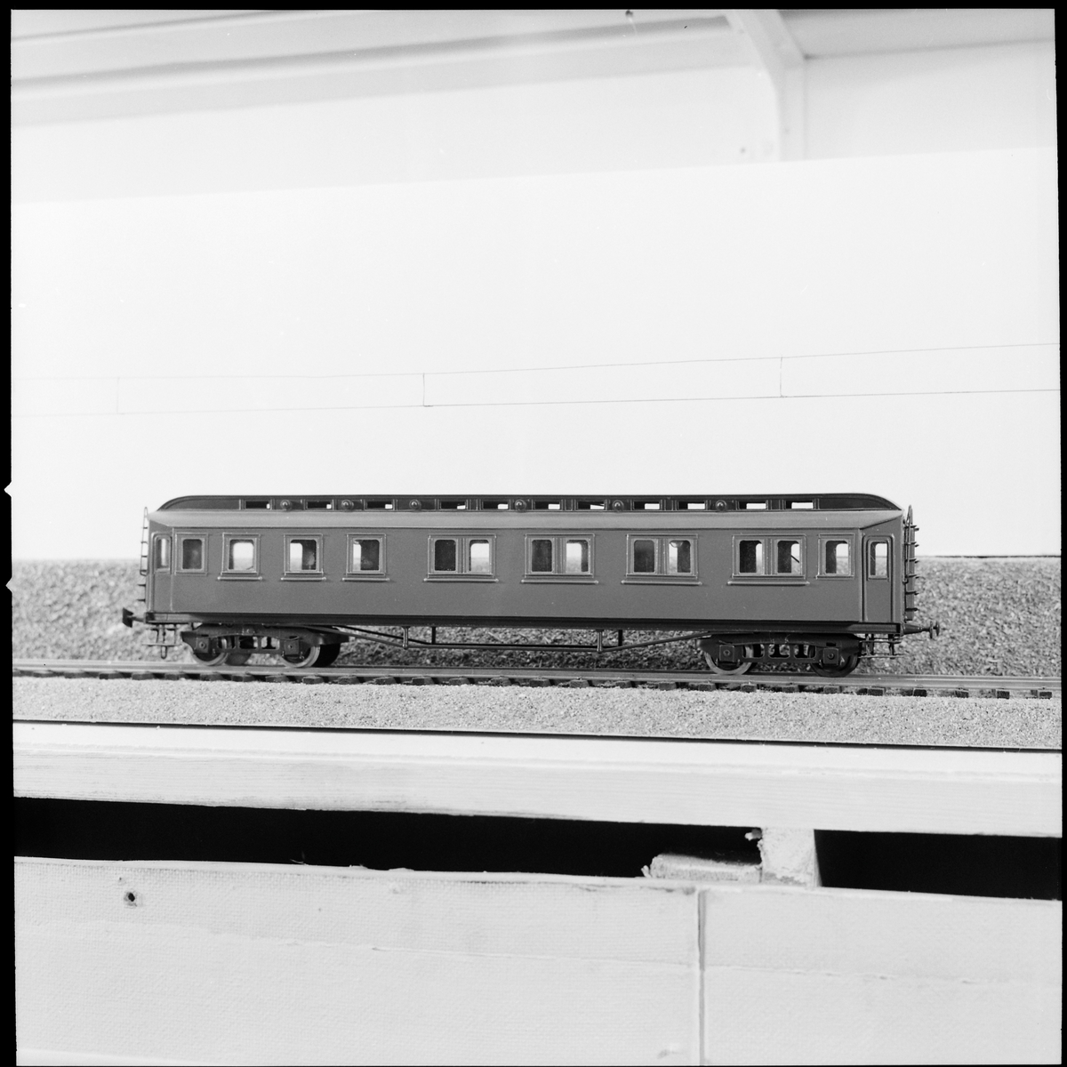 Modell av personvagn littera Co med lanternin, skala 1:50.