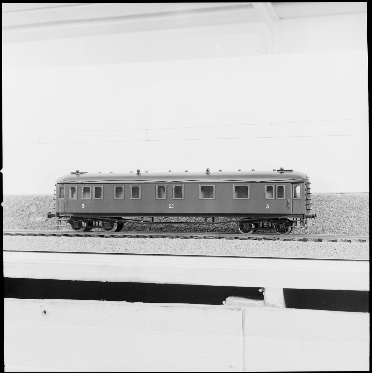 Modell av 3:e klassens personvagn, Statens Järnvägar SJ Co, skala 1:50.