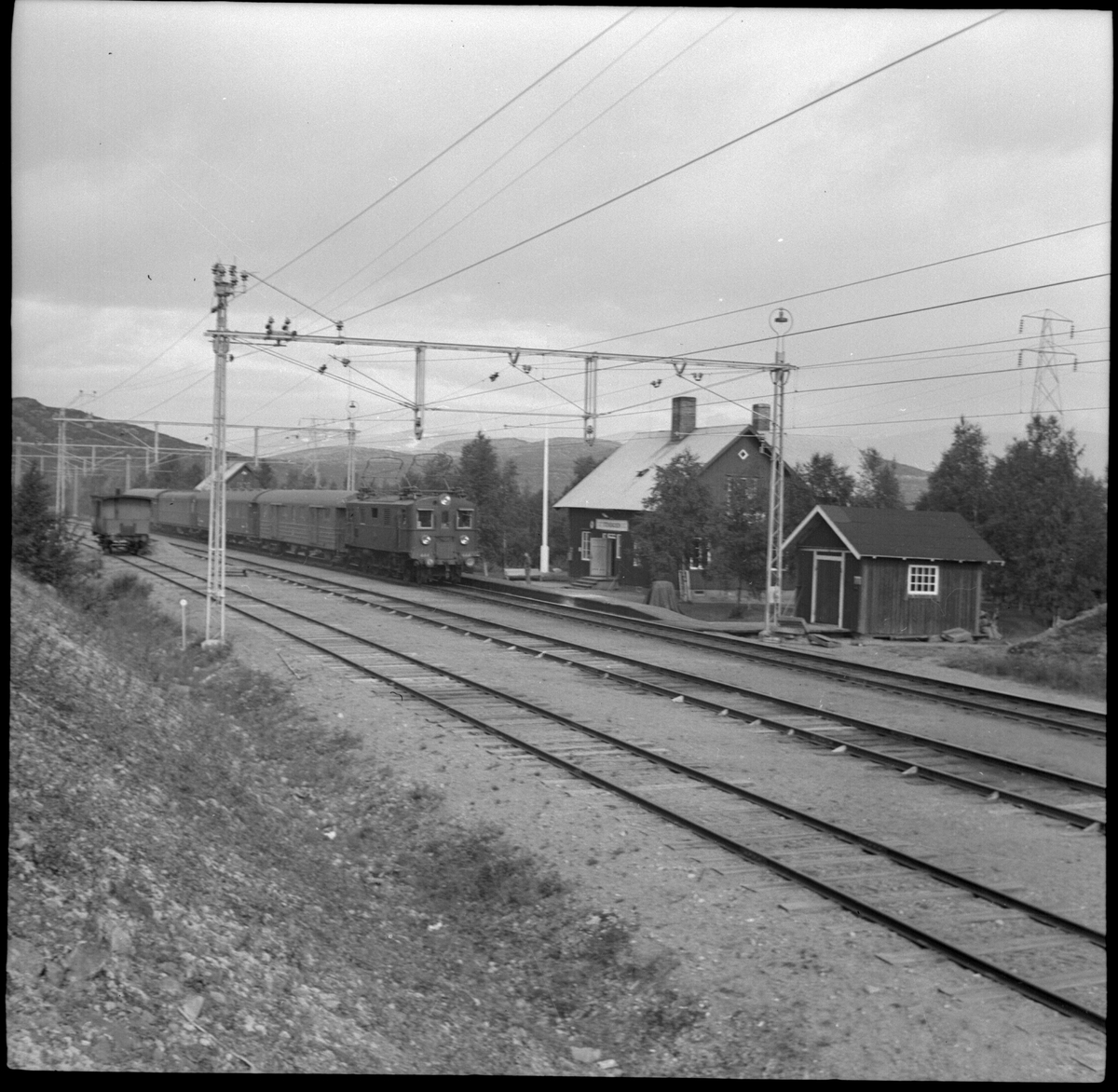 Södergående persontåg 21 med lok SJ Dk 444 och SJ F04 resgodsvagn vid Stenbacken station.