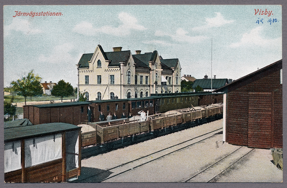 Visby station med Gotlands Järnväg, GJ NC 44, närmast i bild. Denna benämns sommarvagn.