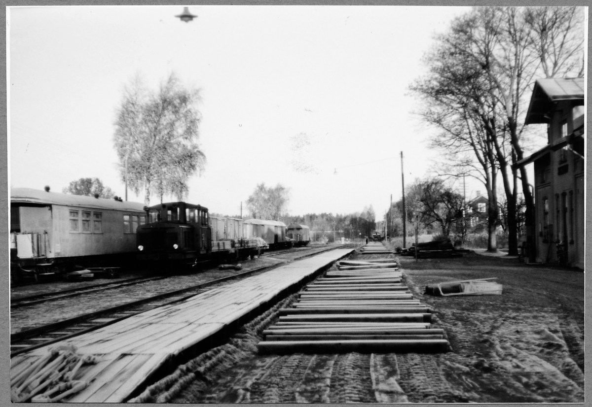Byggnation av normalspåret inne på Jenny station, 1964.