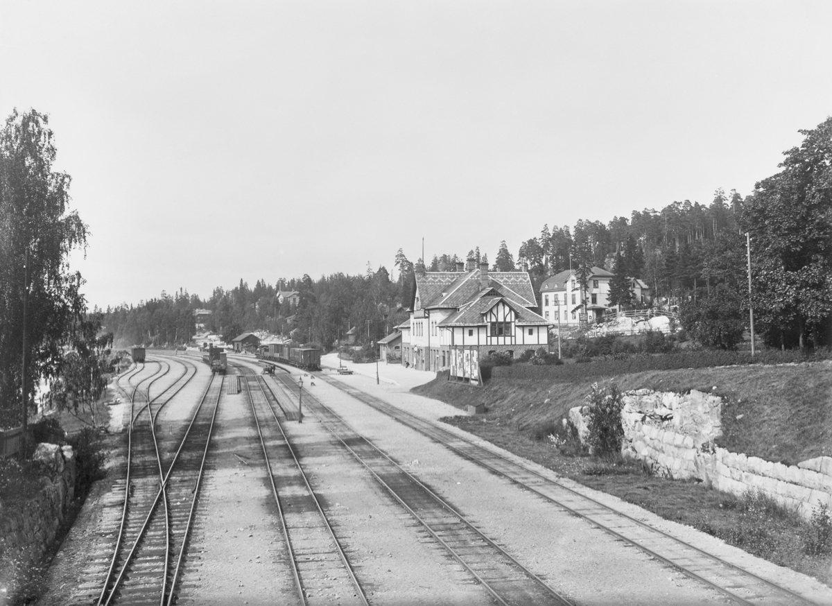 Första stationshuset togs i bruk 1876. Nytt stationshus byggdes 1900. Samma år byggdes bangården ut till sju spår .På smalspårstiden fanns inget egentligt stationhus, utan ett 1850 uppfört hamnkontor tjänstgjorde även som stationshus fram till breddningen 1875/76. Kombinerad station/poststation sedan 1865. Nytt stationshus uppfört av SWB 1875/76.