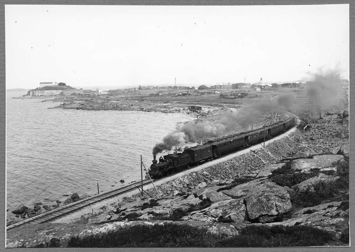 Statens Järnvägar, SJ Da ånglok med snälltåg på Västkustbanan vid Varberg.
