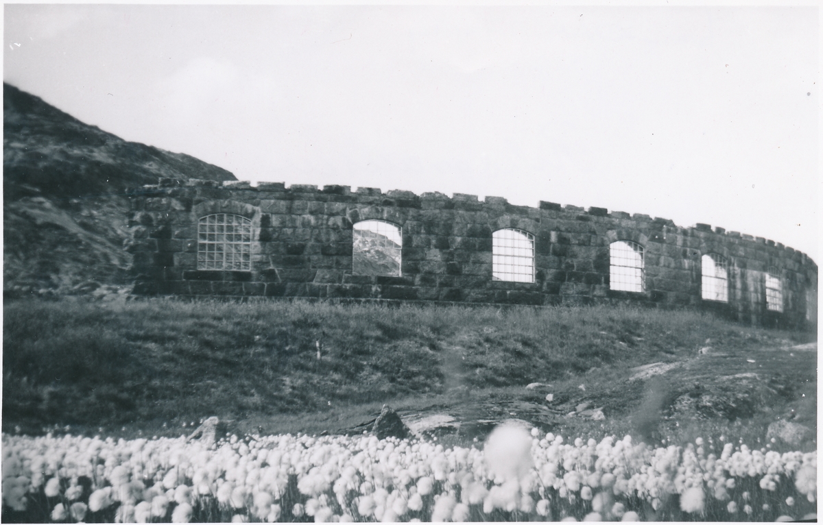 Vad som var kvar av lokstallet vid Riksgränsen sommaren 1936.