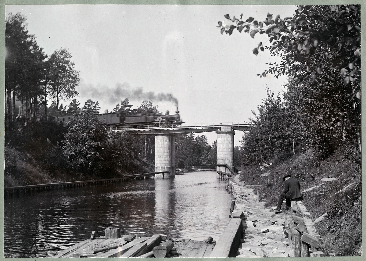 Svängbro över Södertälje kanal. Loket på bron, Statens Järnvägar, SJ Da.