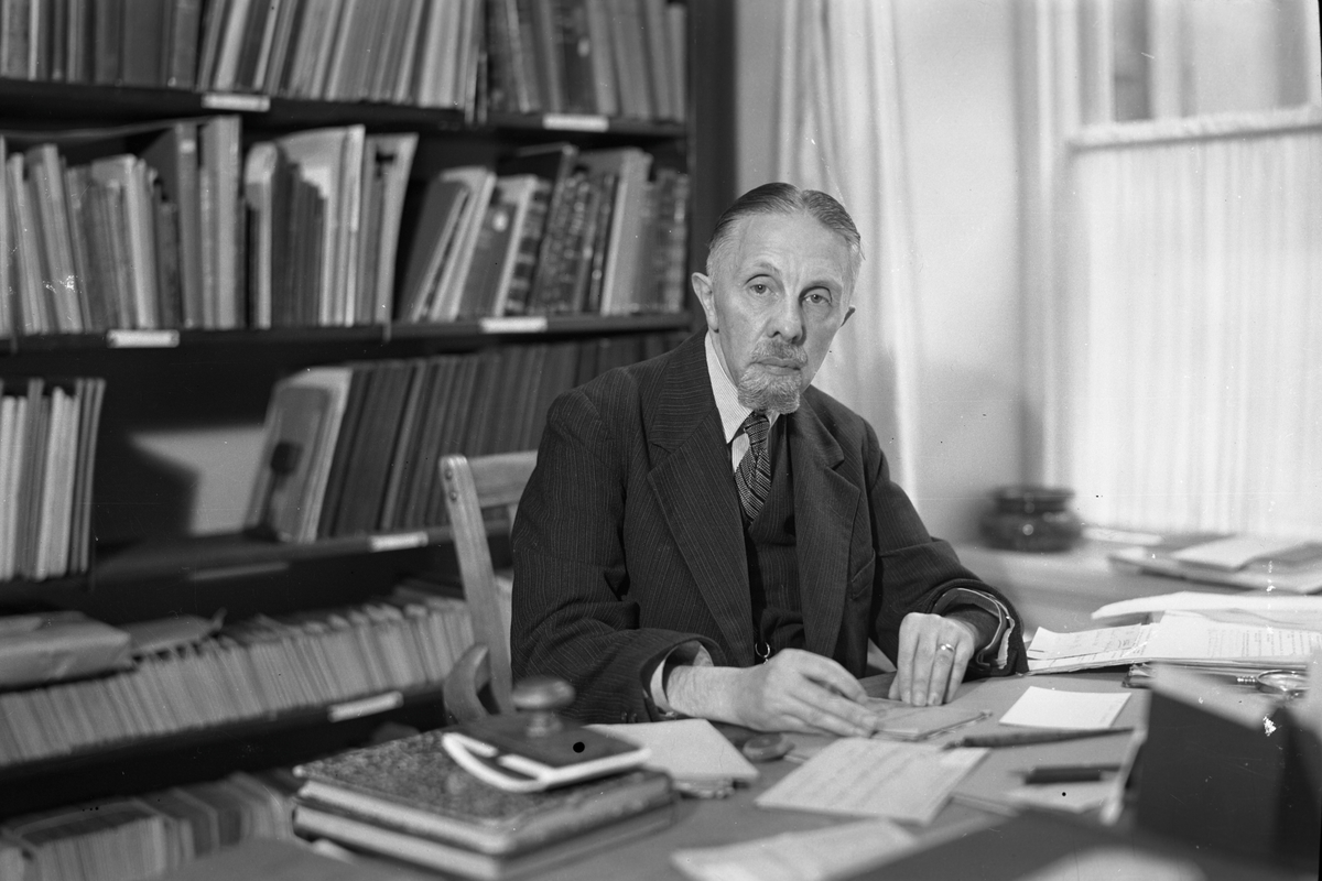 Kontorsskrivare V Wimmerstedt i sitt tjänsterum; Jvm Sista dagen vid SJ