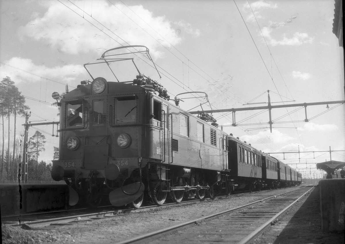 Statens Järnvägar, SJ Dg 354 med vagnar två SJ C3d, två Co13 och BCo3 samt F1.