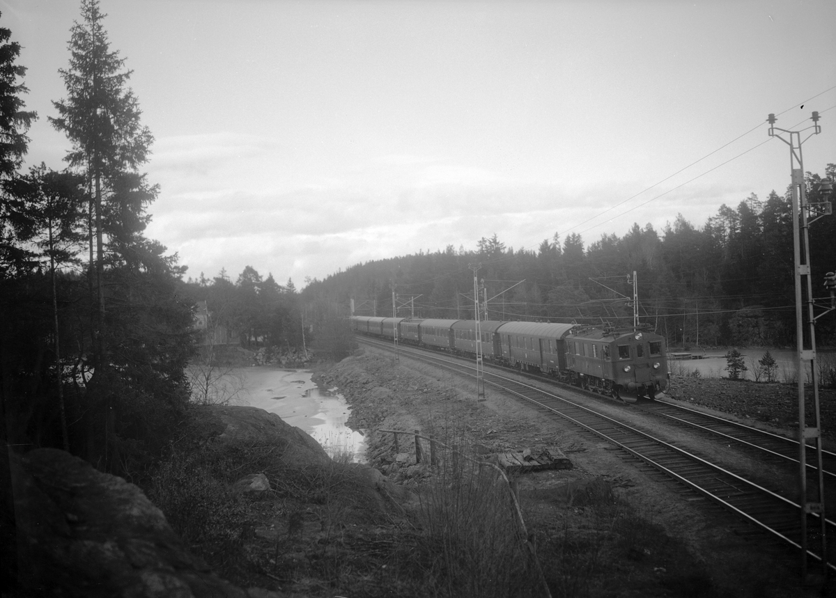 Statens Järnvägar, SJ Ds 322 med persontåg på linjen mellan Rönninge och Östertälje.