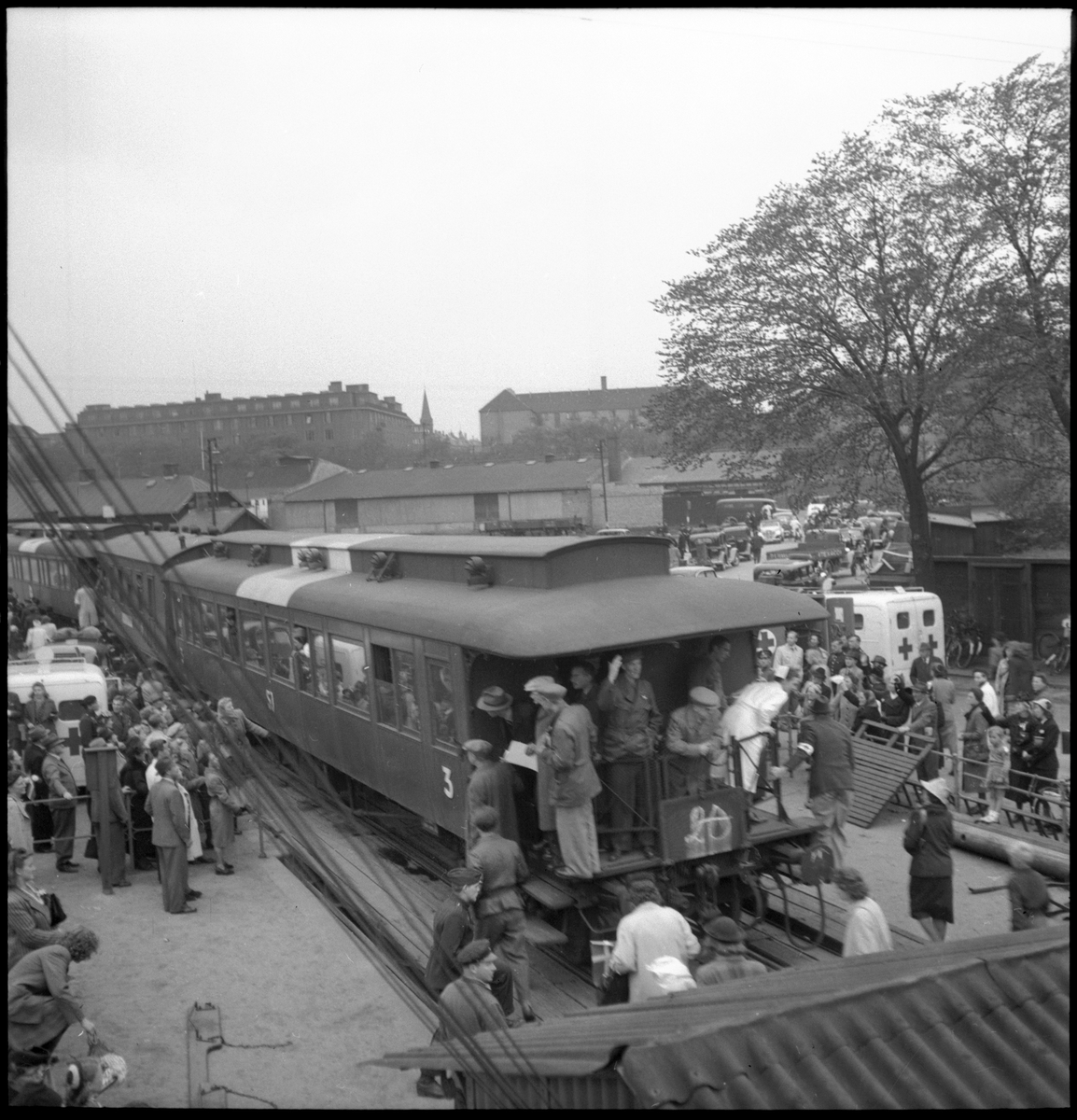 Hemtransport av danska flyktingar, ankomst till Köpenhamns frihamn.