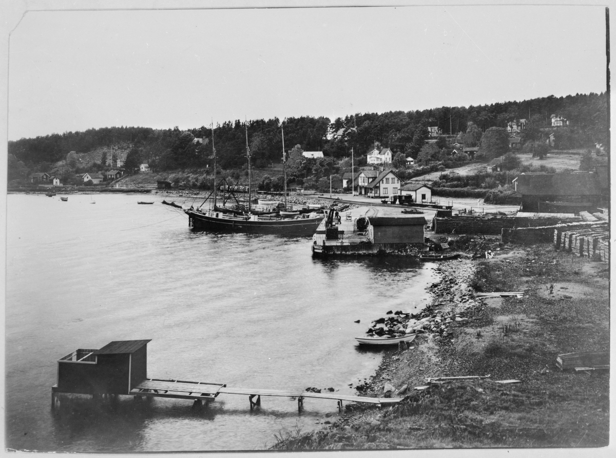 Järnvägsstationen i Kolmården fartyg vid Sandvikens kaj. Bilden är tagen från Serveringsberget.