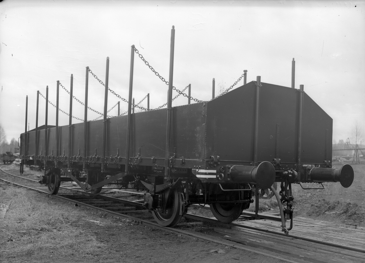 Statens Järnvägar, SJ O 35428. Öppen vagn med stolpar och lämmar.
