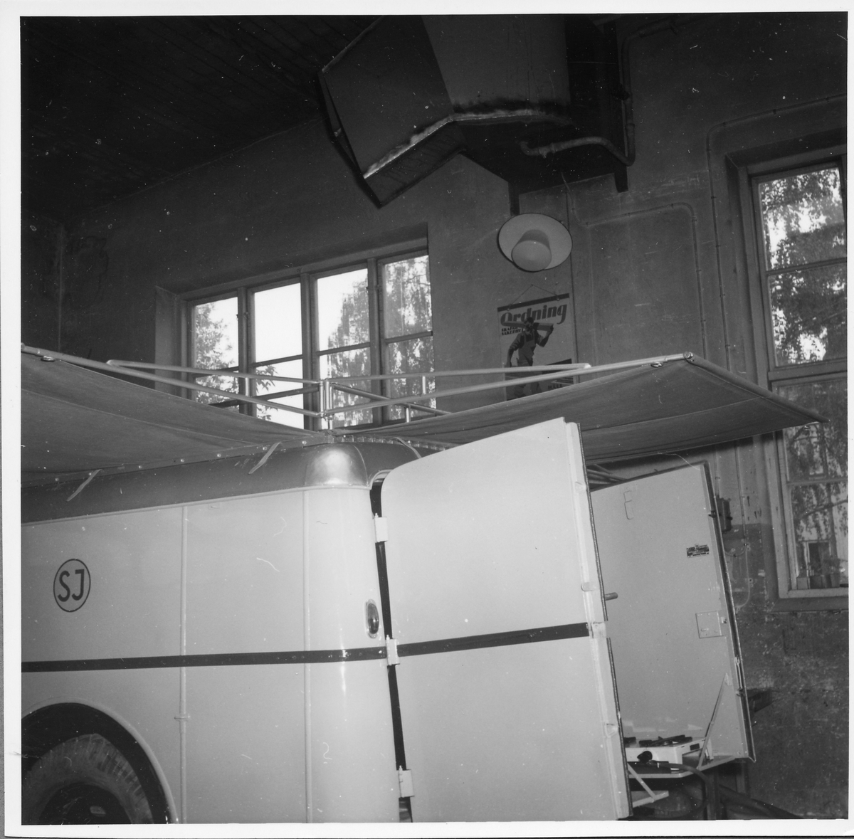 Titel: Statens Järnvägar, SJ Campingvagn tillverkad av Svenska Karosseriverkstäderna Aktiebolag i Katrineholm.