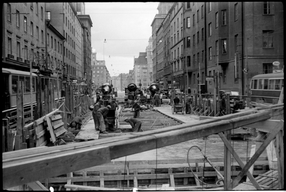 Pågående tunnelbanebygge på Eriksgatan vid Sankt Eriksplan i Stockholm, 1946.