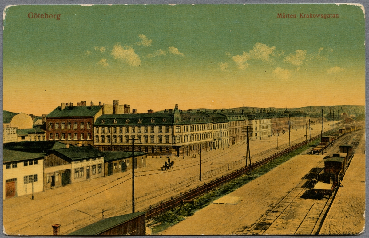 Kolorerat vykort. Mårten Krakowgatan i Göteborg.