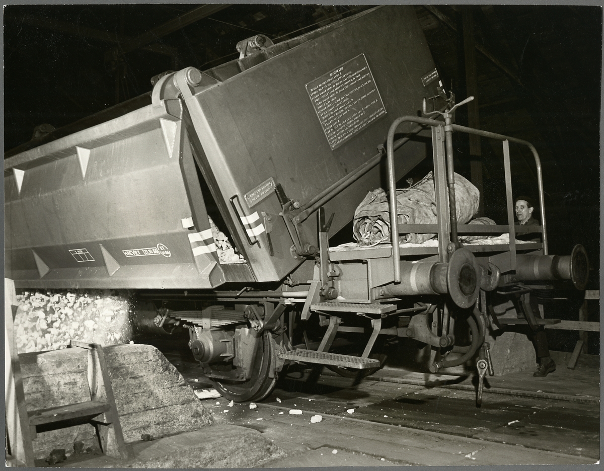 Trafikaktiebolaget Grängesberg–Oxelösunds Järnvägar, TGOJ Q-tipp vagn vid AB Järnförädling.