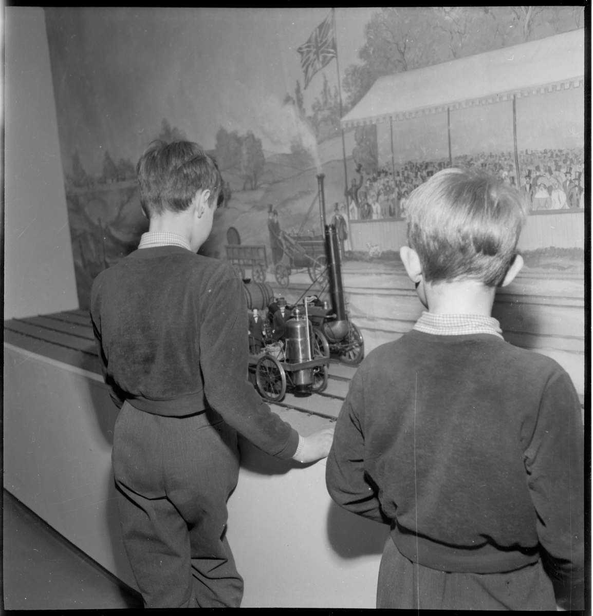 Modeller av ånglok på järnvägsmuseets lokaler på Torsgatan, Stockholm.