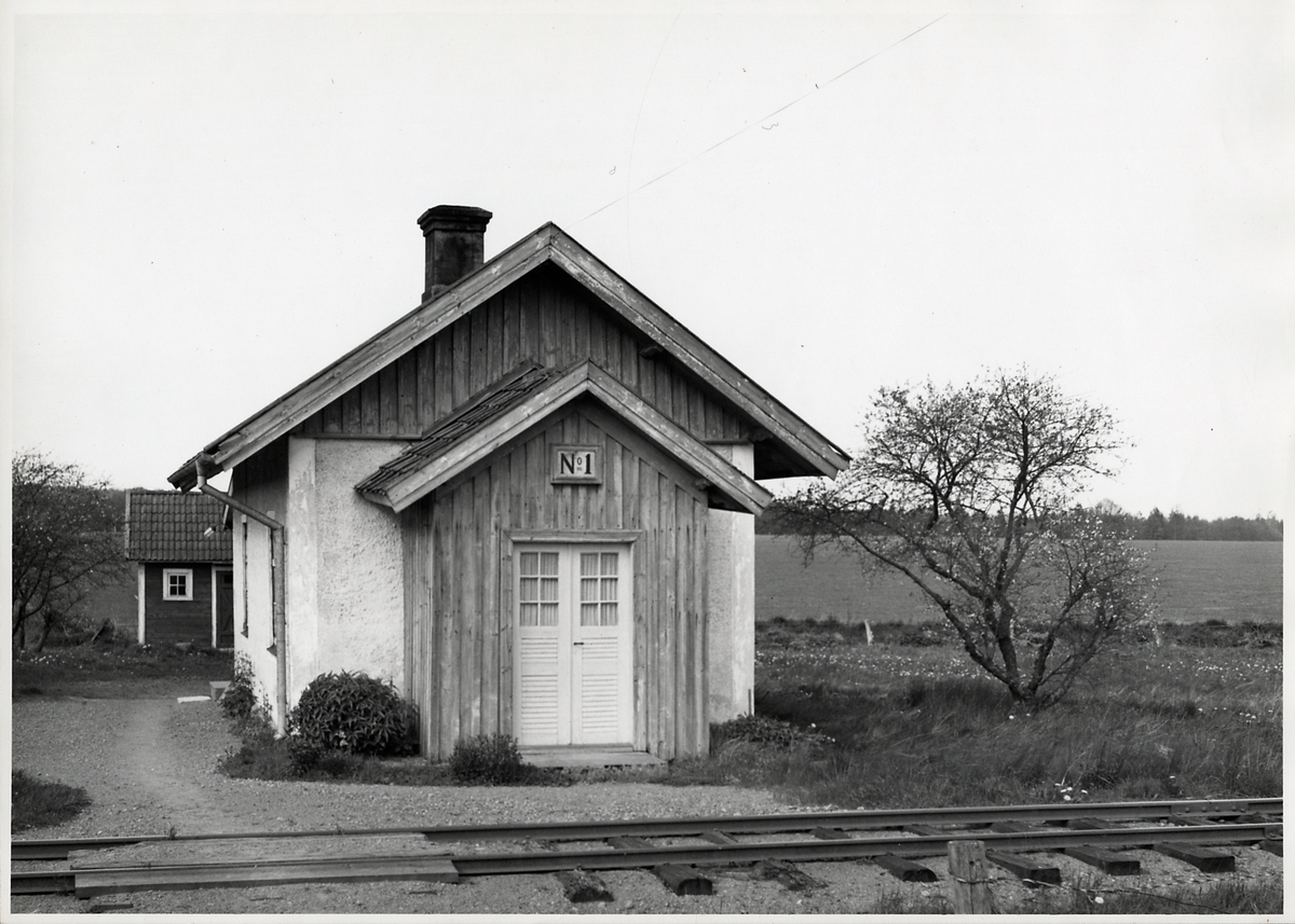 Banvaktsstuga Nummer 1 på linjen mellan Hjo och Stenstorp. Banvaktstugan kallas Åsens grindar och förvaltas sedan ett antal år av Hjo Trädgårdsförening och Hjo Biodlarförening.