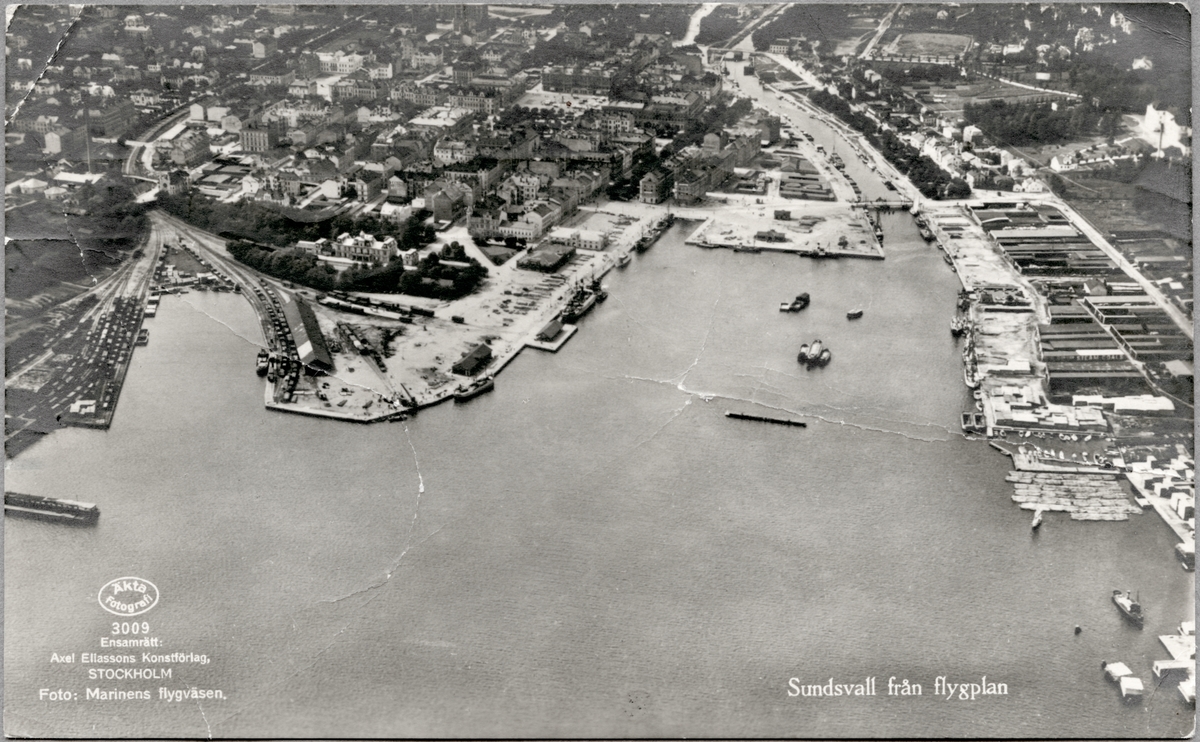 Flygfoto över Sundsvall och hamnområdet.