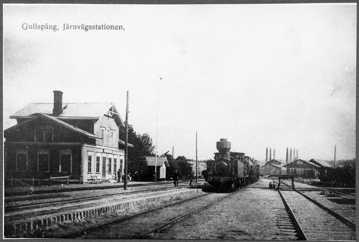 Nora Bergslags Järnvägar, NBsJ lok 11 på stationen i Gullspång i samband med Första Världskriget.